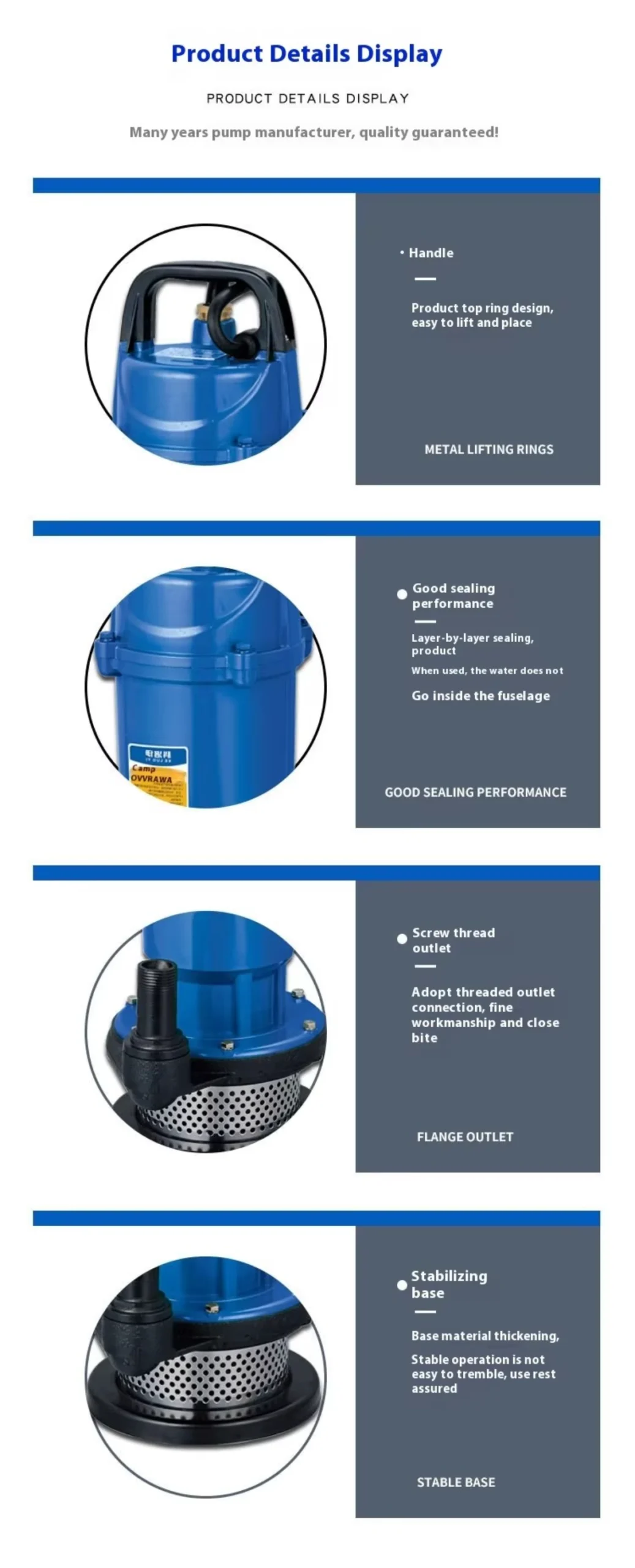 The QDX submersible pump has a compact structure, small size and does not take up much space. It is a small submersible pump with high flow rate and can be easily installed in various swimming pools, ponds, wells and other places.