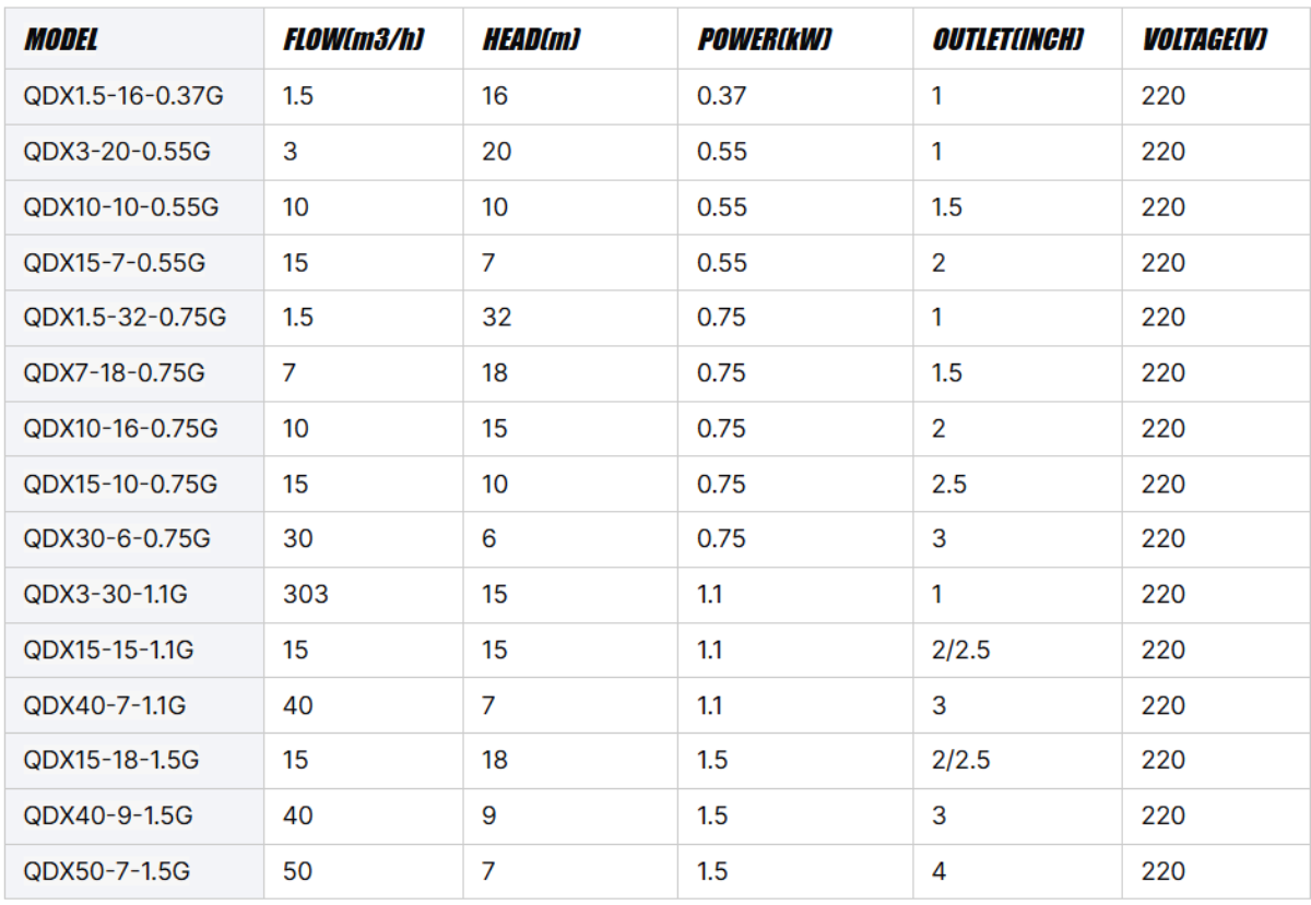 QDX Electric Single Phase Pump High Pressure Submersible Water Pump Deep Well Copper Wire With Cast Aluminum Body Wast Water Sewage Water Pump